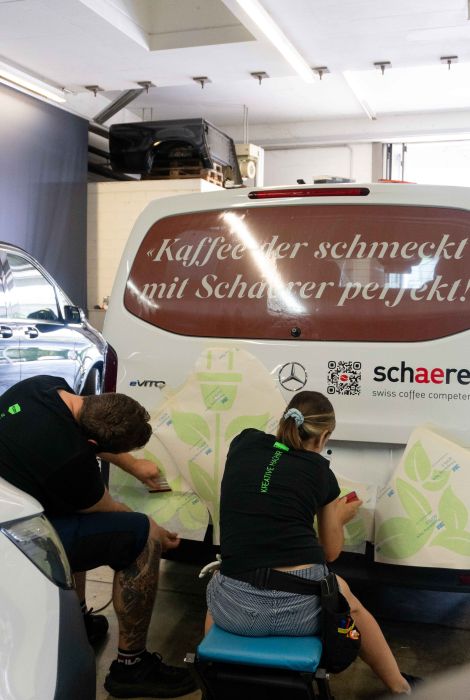 Egal, ob dezente Akzente oder grossflächige Werbung – unsere hochwertigen Folien und präzise Verarbeitung sorgen für einen bleibenden Eindruck. Ihr Fahrzeug kann mehr als nur von A nach B fahren – nutzen Sie die Fläche als Werbe- und Marketingfläche und lassen Sie die rollenden Werbeträger für sich sprechen. Ziehen Sie die Blicke auf sich – in der Stadt, auf der Autobahn, auf dem Parkplatz oder vor Ort bei Kunden.