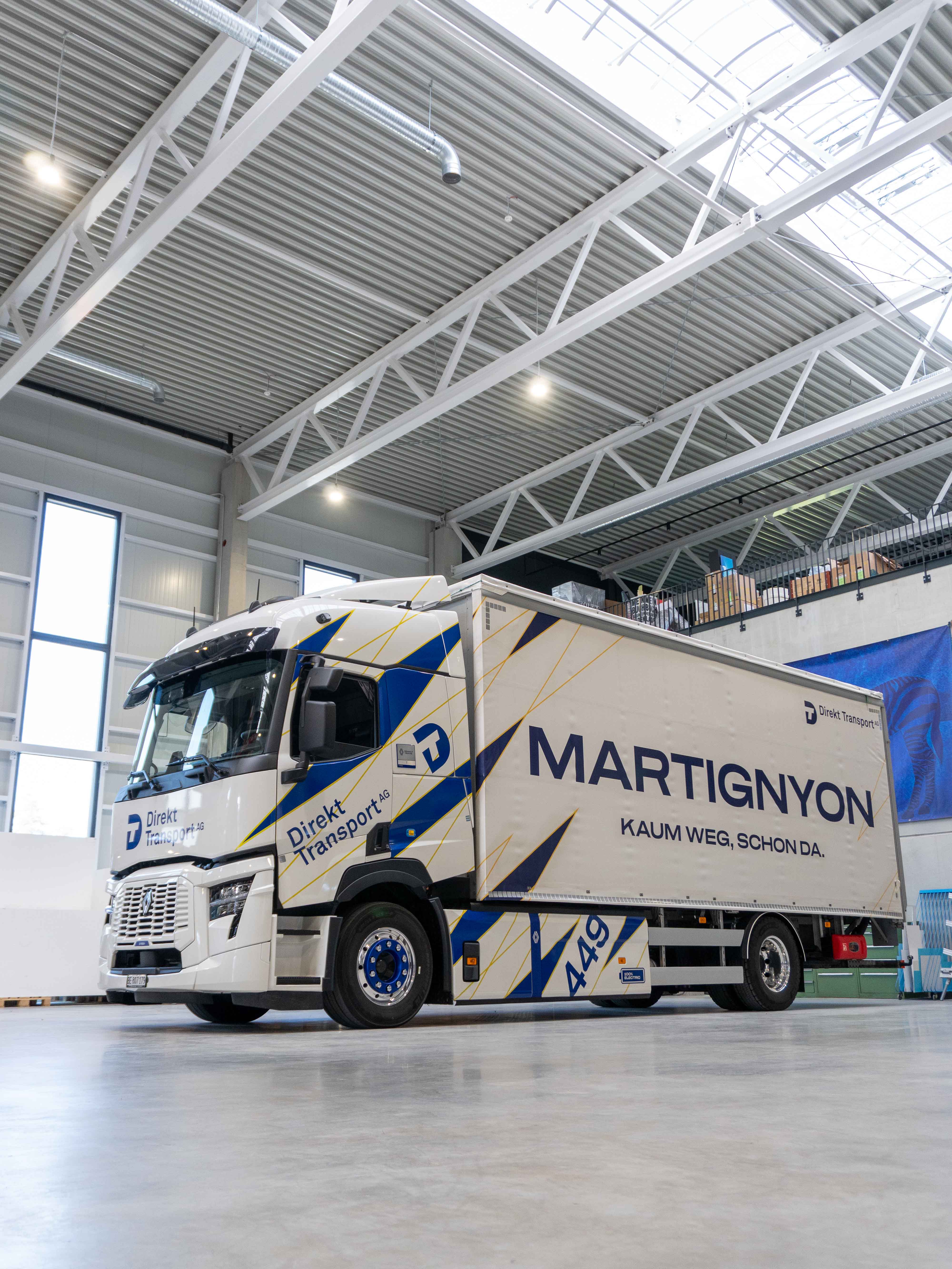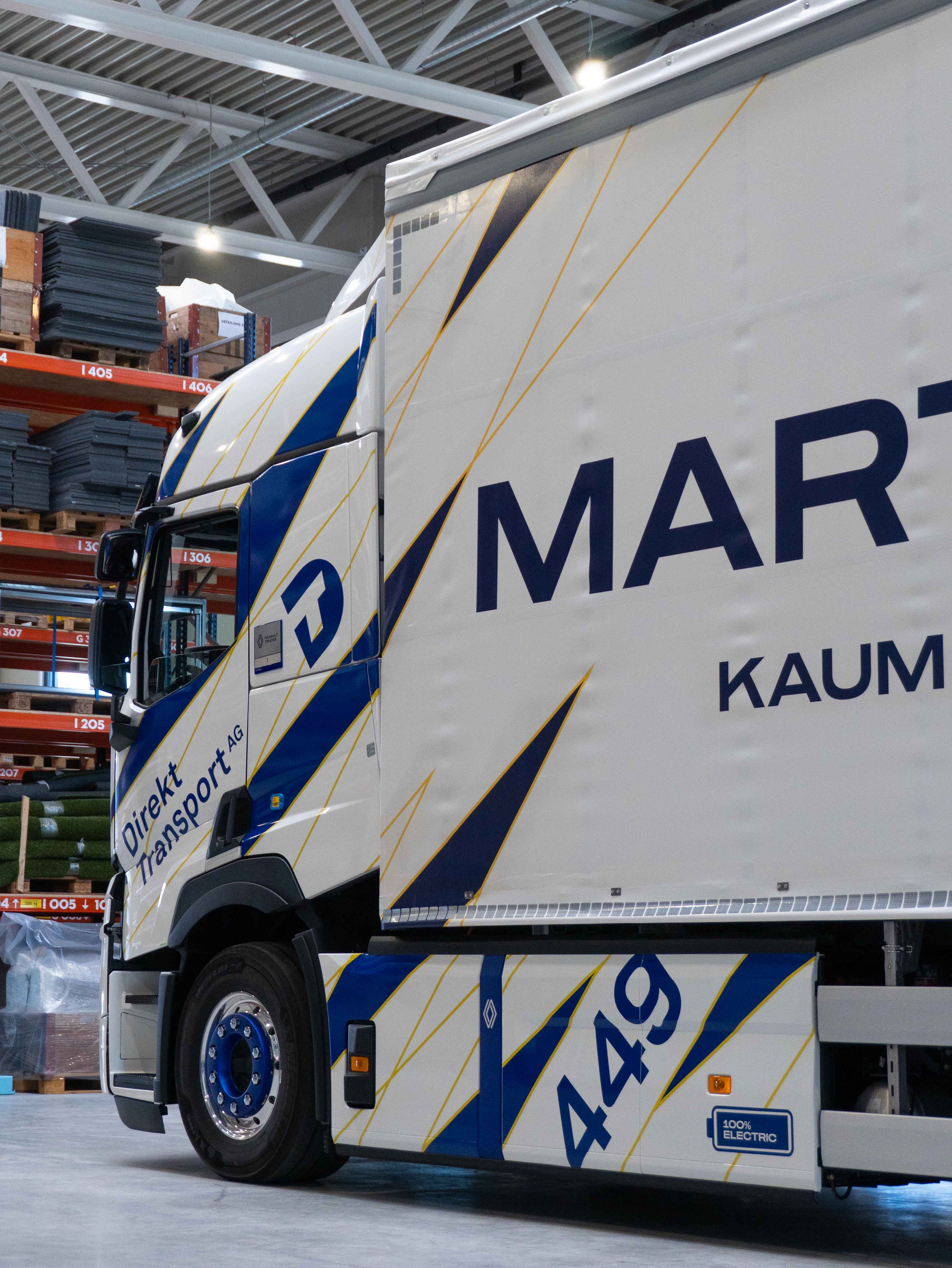Von Tag zu Tag wächst die neue Direkttransport-Flotte: Mit jeder Anschaffung erhält ein weiterer LKW sein unverkennbares Design – sichtbar bei Tag, eindrucksvoll leuchtend bei Nacht.