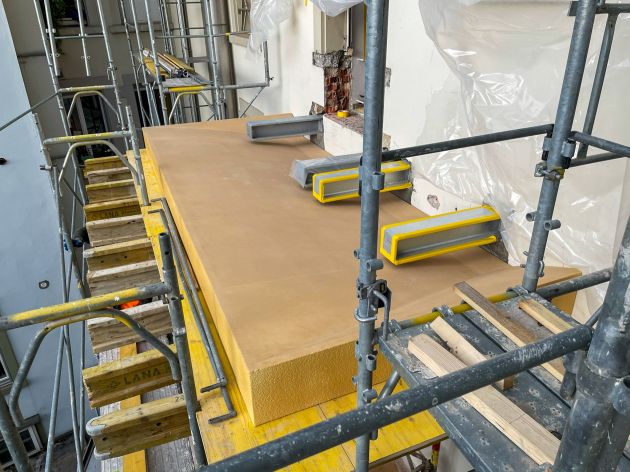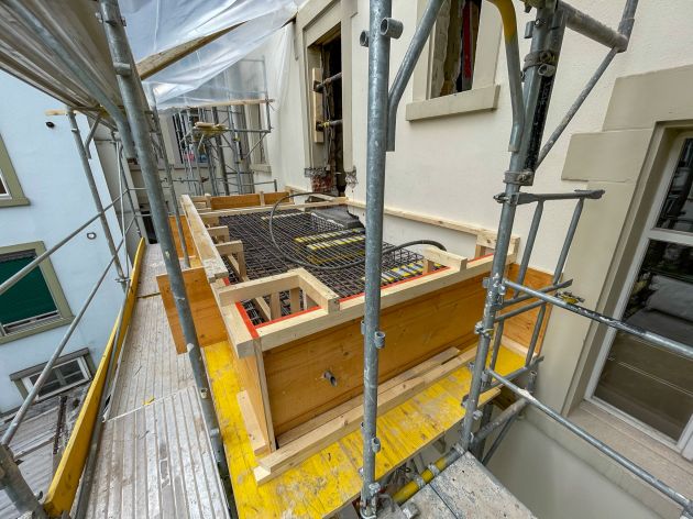 Produktion einer Spezial-Gussform für die Balkonerweiterung an einem denkmalgeschützten Haus in Bern. Für uns war es eine wertvolle Erfahrung in der Baubranche, da wir grosses Potenzial darin sehen, ressourcenschonend Negativformen für den Bau zu produzieren.