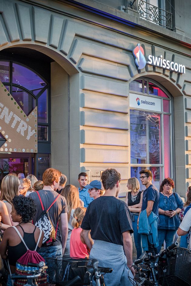 Der Swisscomshop am Bubenbergplatz in Bern wird kurzerhand umgebaut und für einen Abend zum Konzertsaal.