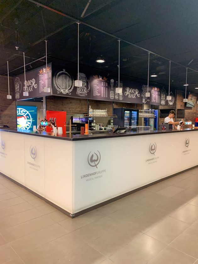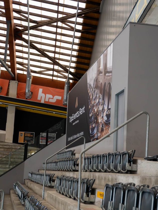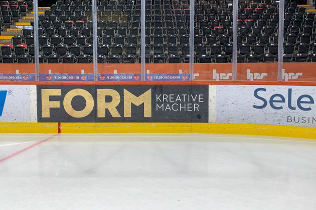 Ob die Beschriftung der Banden auf dem Eis, das Anbringen von Stadionwerbung, die Montage von Logos in den Garderoben, das Folieren und Beschriften des VIP-Bereiches wie beispielsweise die LimeLounge oder die präzise Anbringung des Plexilogos in der Captains Lounge – die Art der Beschriftungen im gesamten Stadionbereich ist so vielseitig wie die verwendeten Materialien und deren spezifischen Anforderungen.