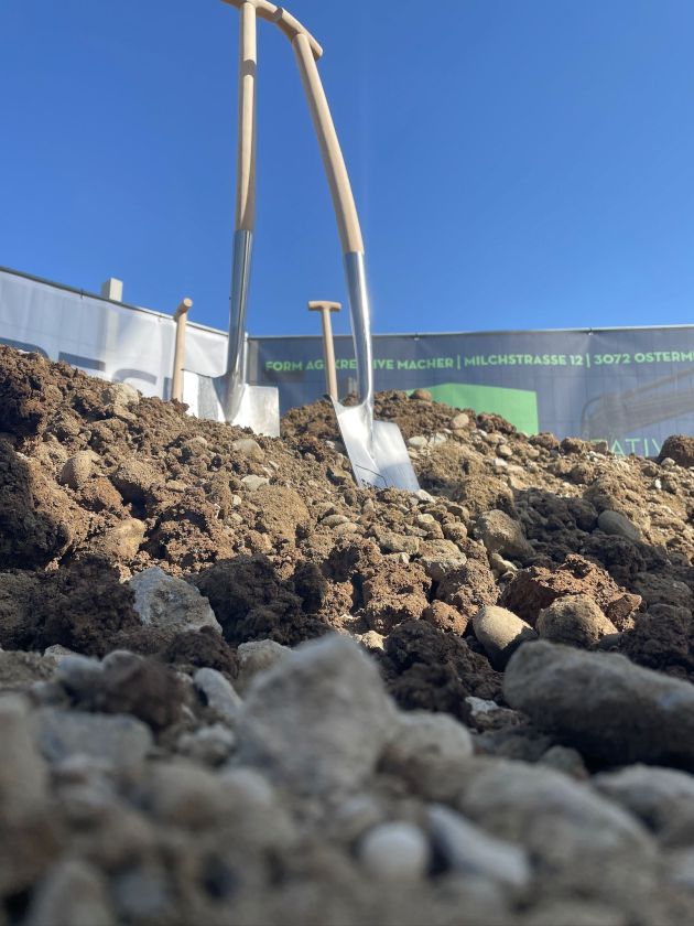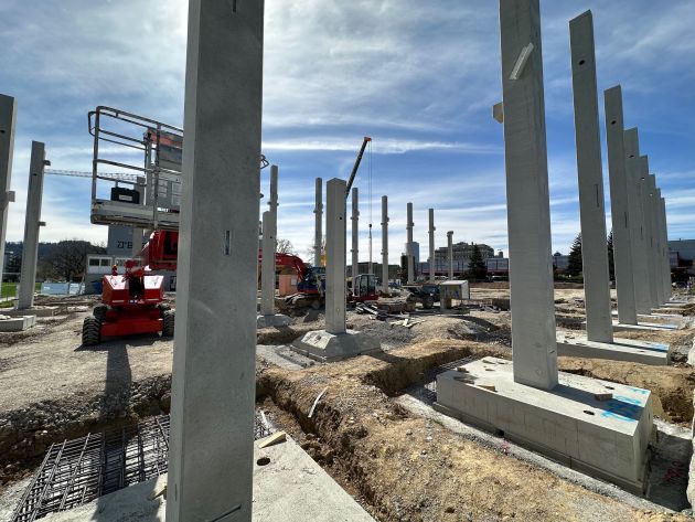 Auf der grünen Wiese in Ostermundigen entsteht unser neues Gebäude. Zusammen mit der Firma Goldbeck Rohmberg, welche die Bauführung übernehmen, geht es im Elementbau in grossen Schritten voran. Ziel ist es im November 2024 unsere neuen kreativ Werkstätte zu beziehen.