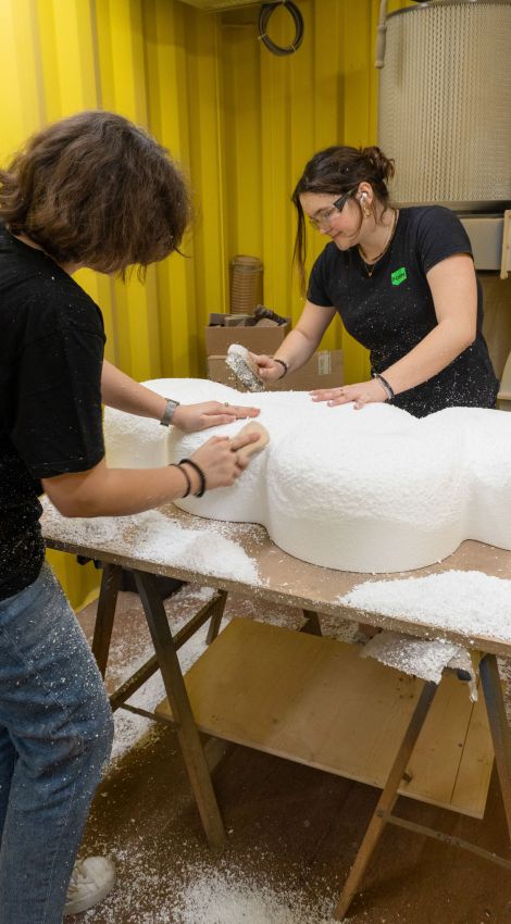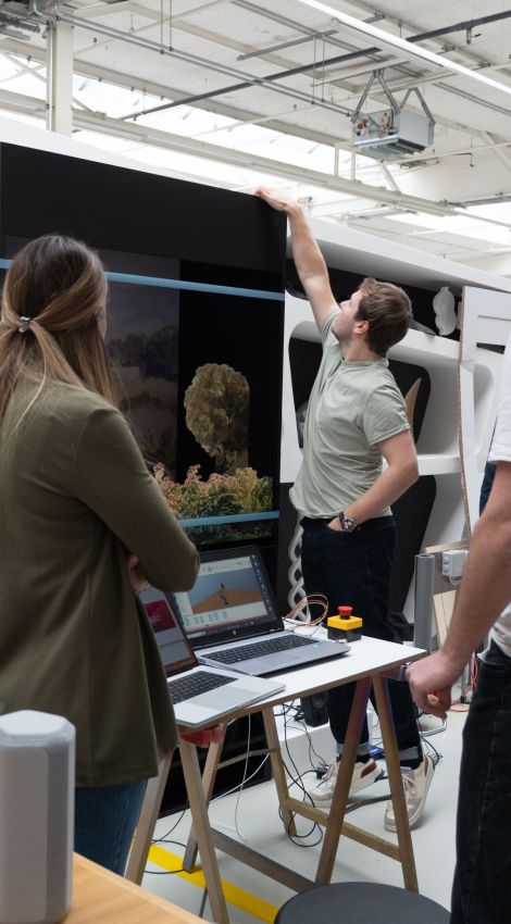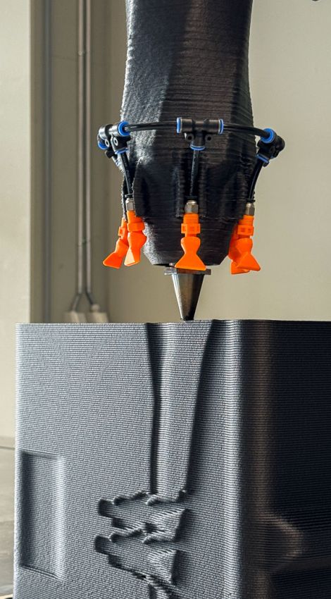Neben individuellen Markeninszenierungen entwickeln wir auch eigene Produkte: formcollection ist unsere Kollektion von nachhaltigen, 3D-gedruckten Designobjekten und Möbeln. Die erste Kollektion, WAVE, besteht aus modularen Regalelementen aus recyceltem Karbonfaser-Material, das aus Windrädern und der Automobilindustrie stammt. Jedes Stück wird präzise im 3D-Druckverfahren gefertigt, ist innen hohl, akustisch wirksam und in verschiedenen Filzfarben individuell konfigurierbar.